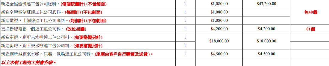 水電項目(每500呎)